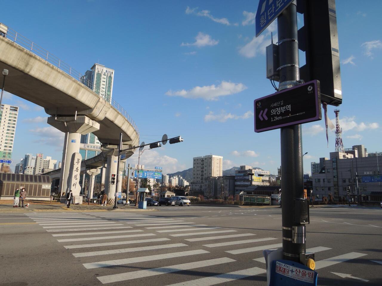 두가지 이정표를 확인 하면서 가고 의정부시청에서 북한산둘레길과 길이 갈려 의정부역 방향으로 도로변 따라