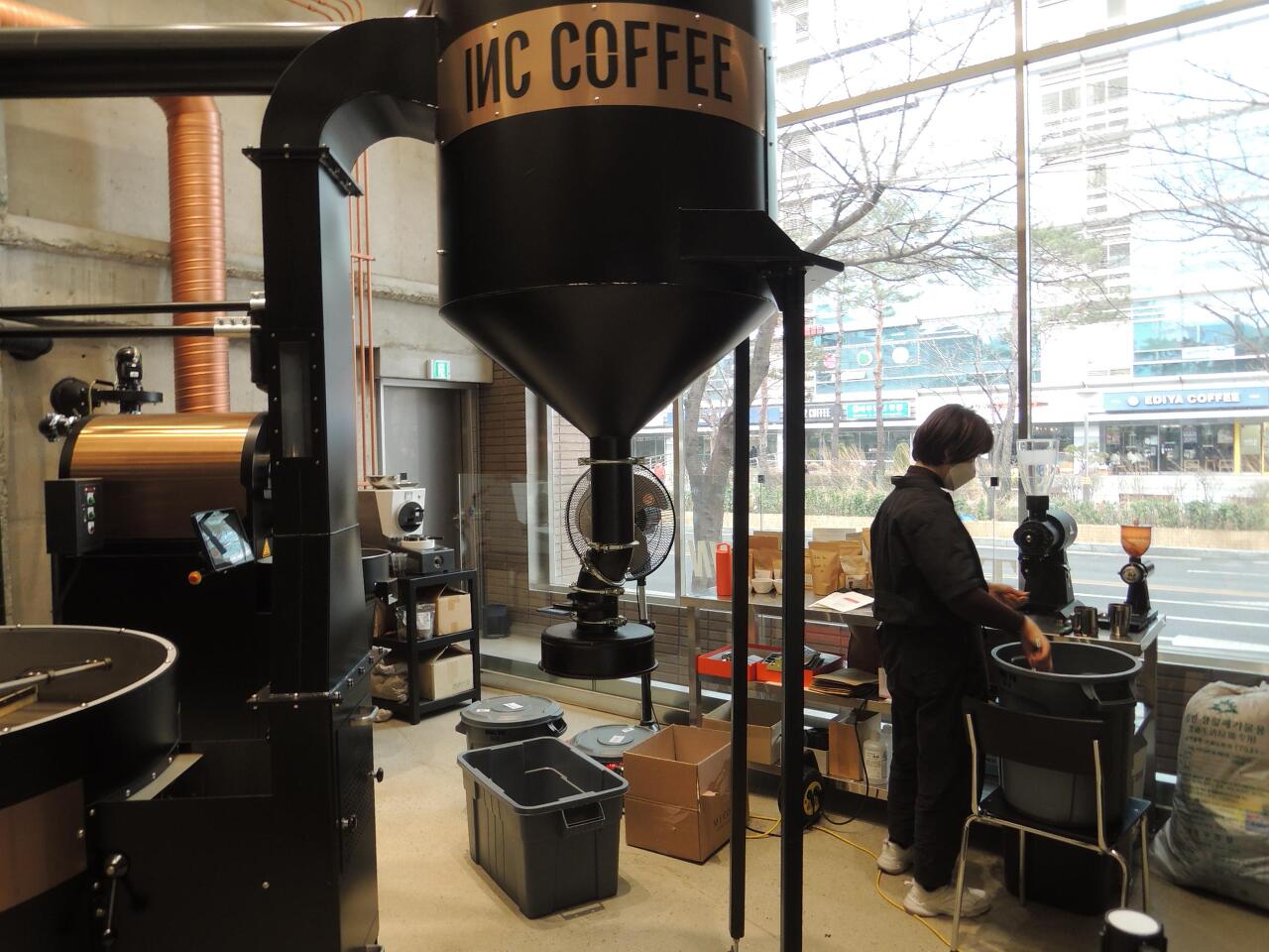 인크커피란 상호가 나와서 들어가니 꽤나 넓다. 커피와 관계된 여러 기계들이 보이는데 길객은 무언지 모르고