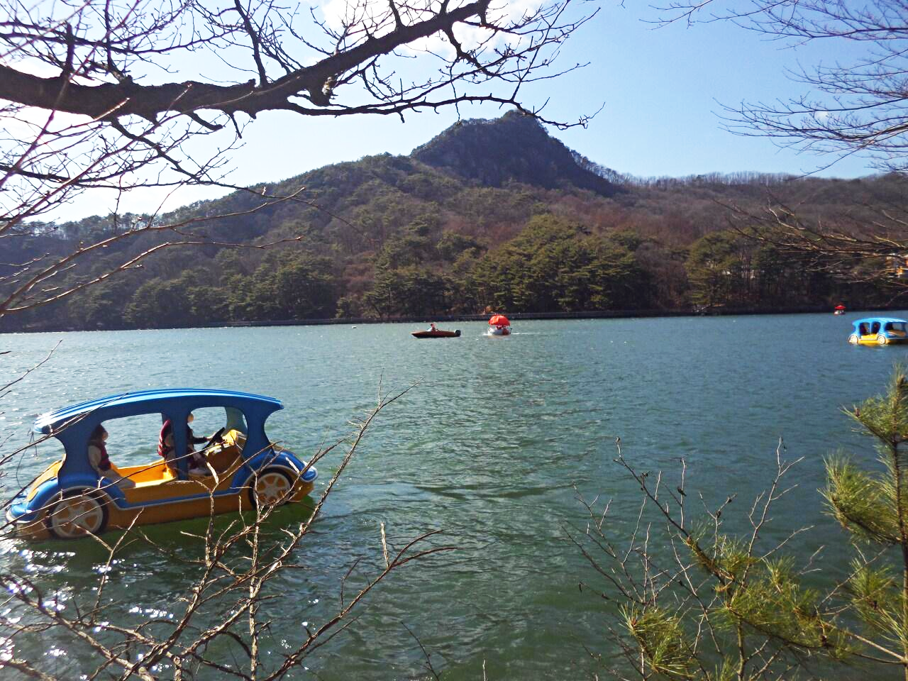 낙천지 폭포에서 가파른 계단길로 올라가면 산정호수가 펼처지고 관광객의 모습도 많이 보인다. 산정호수는 여러번