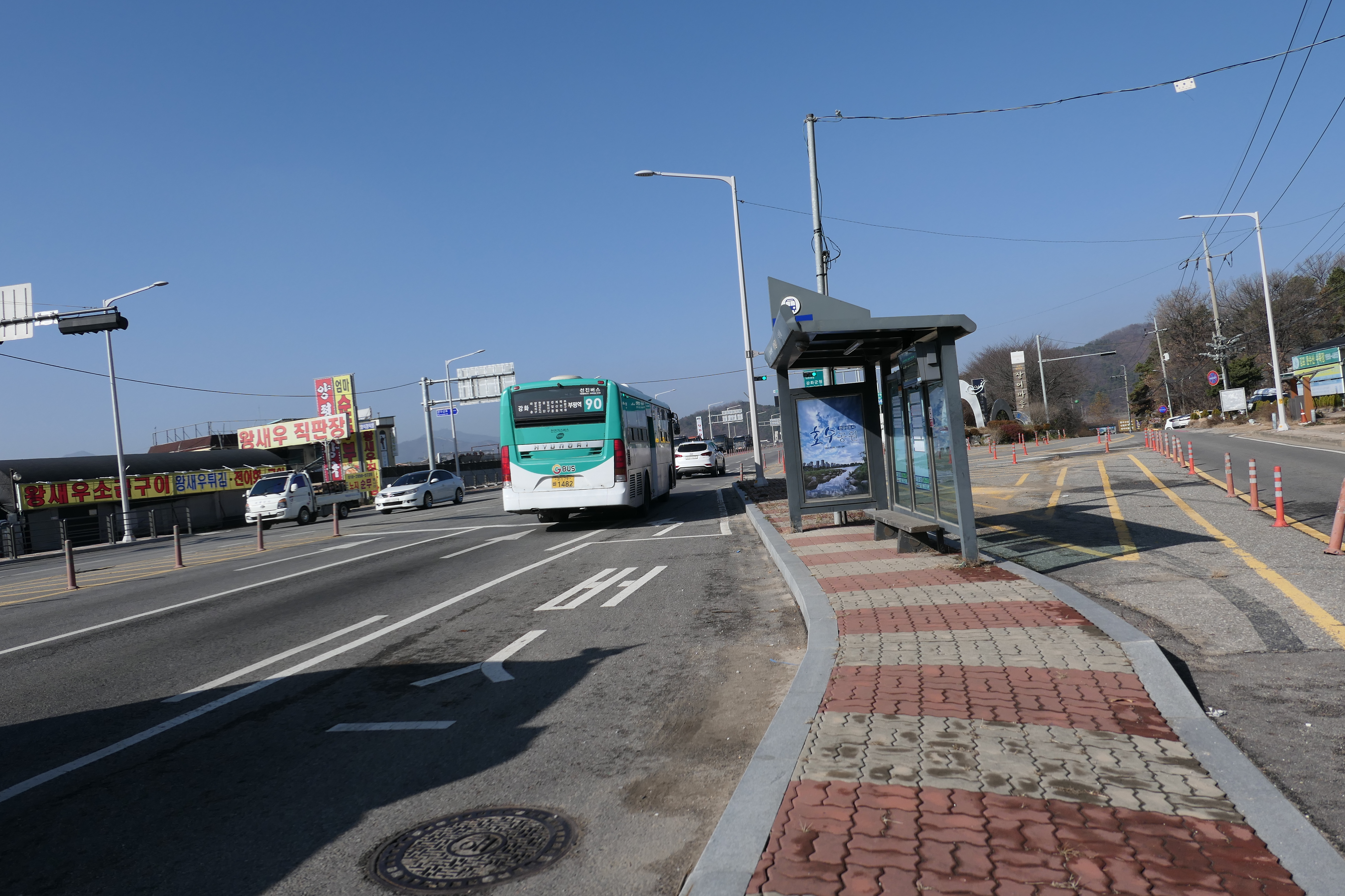 김포옛길 마지막 4코스 한남정맥길을 역코스로 가기위해 김포전철 구래역서 90번 버스로 강화대교 앞 성동검문소에