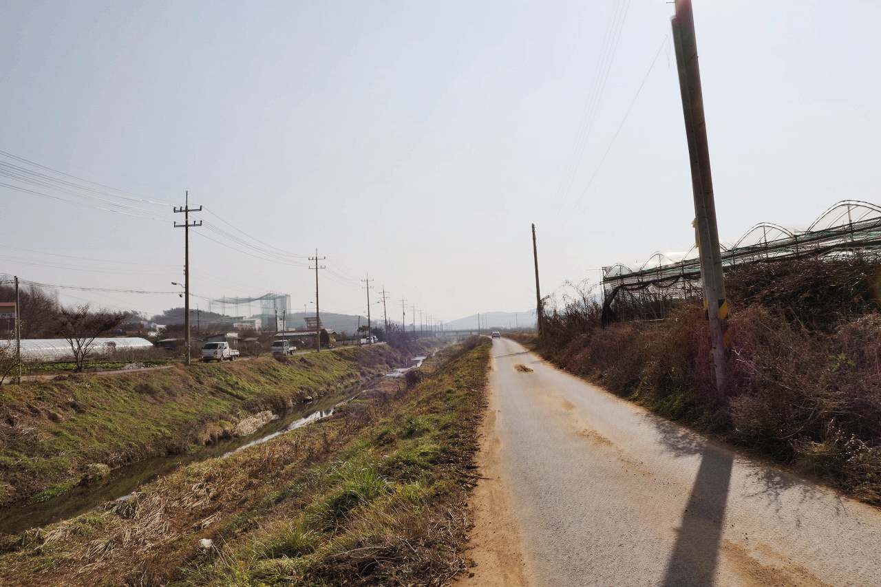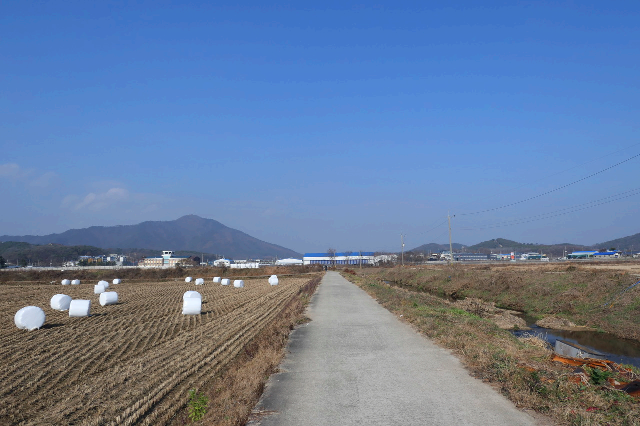 느긋하게 걷는데 시작은 도로를 따라 가다가 농촌길로 접어 드는데 차량이 다니는 좁은 제방길도 있고 편한 길도 있다.