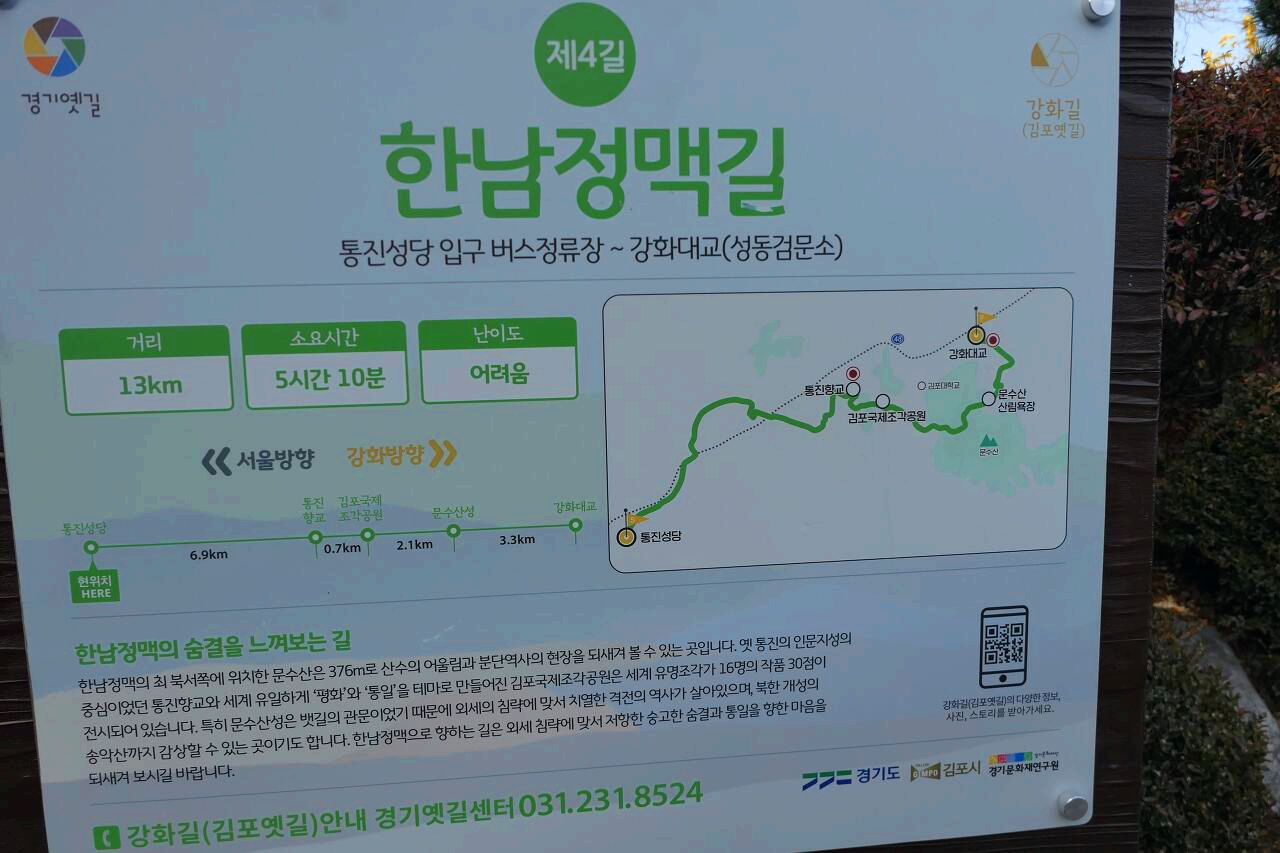 김포옛길 4코스 한남정맥길중 전반부 문수산을 넘어와 통진향교에서 끝내고 다음날 후반부를 걷기위해 김포전철