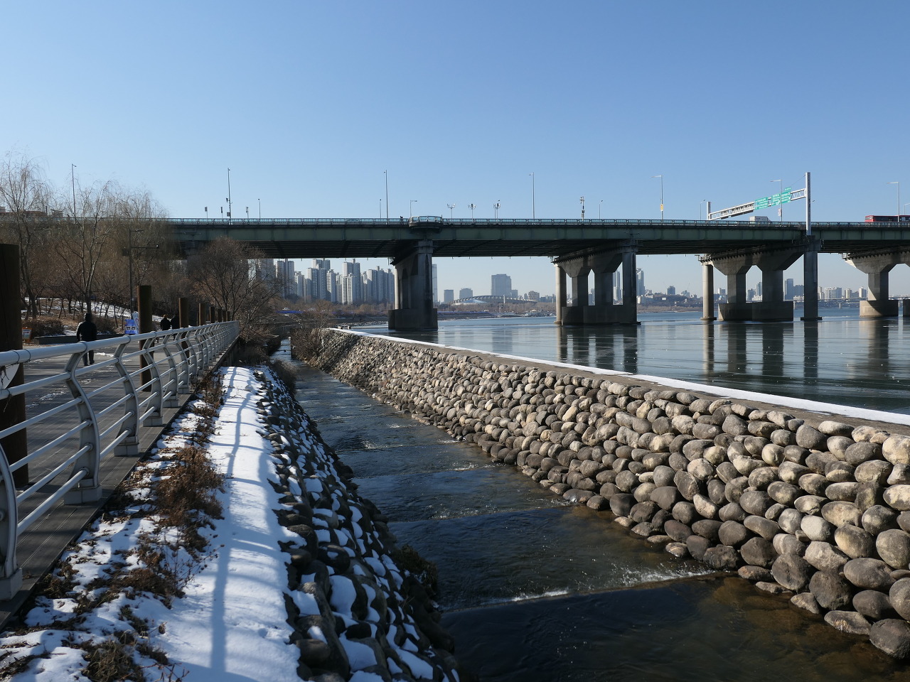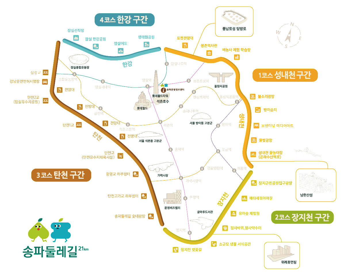 송파둘레길 4코스 한강구간을 가기위해 전철 2호선 잠실나루역 1번 출구에서 성내천으로 들어가 잠실철교가 보이는