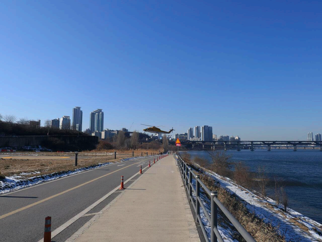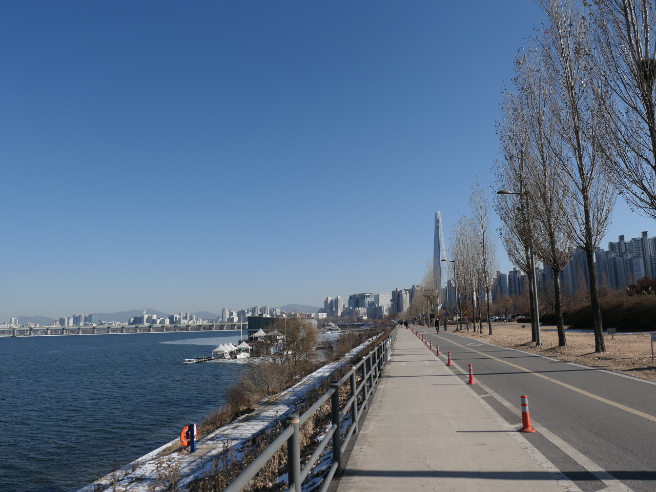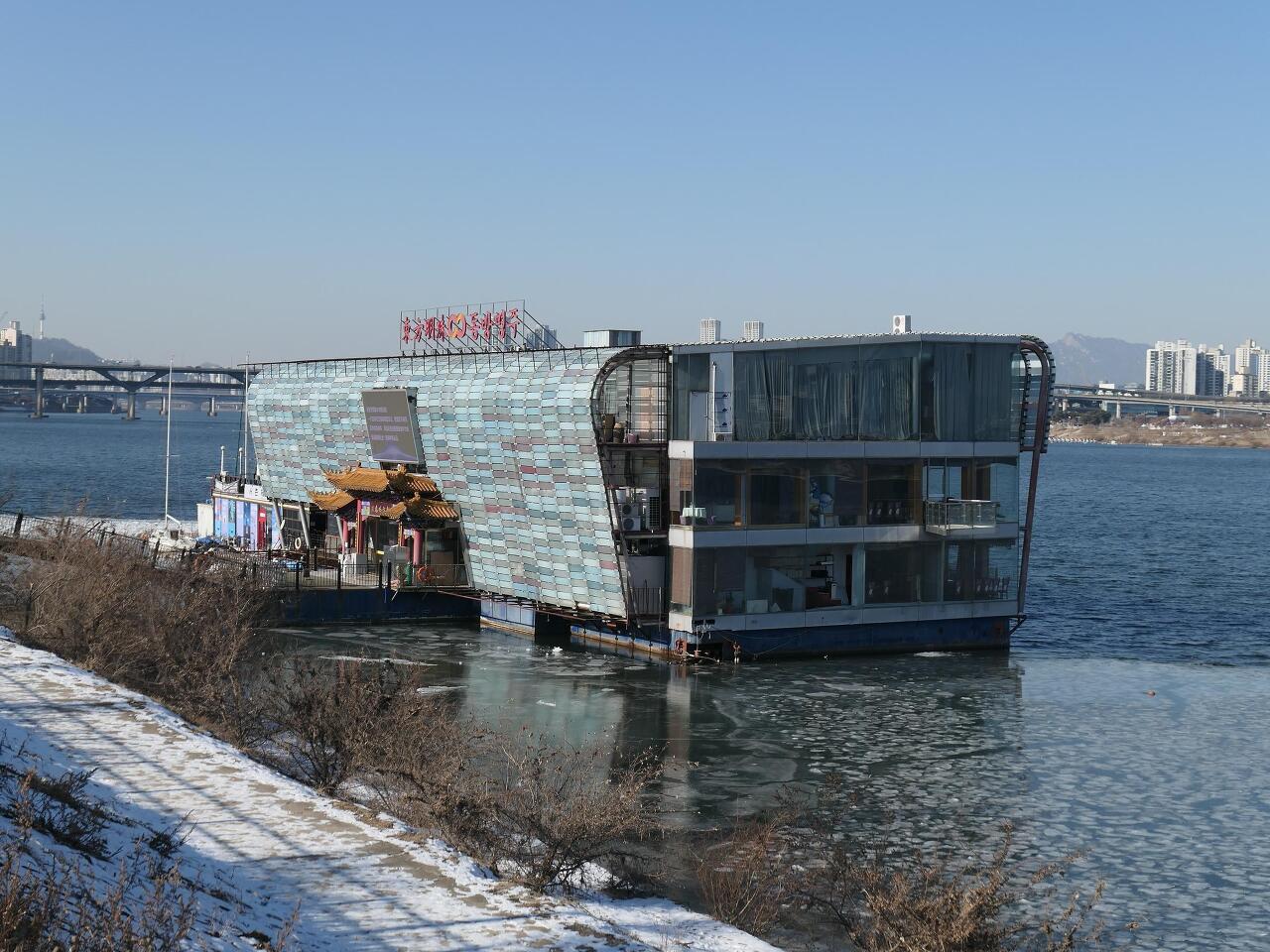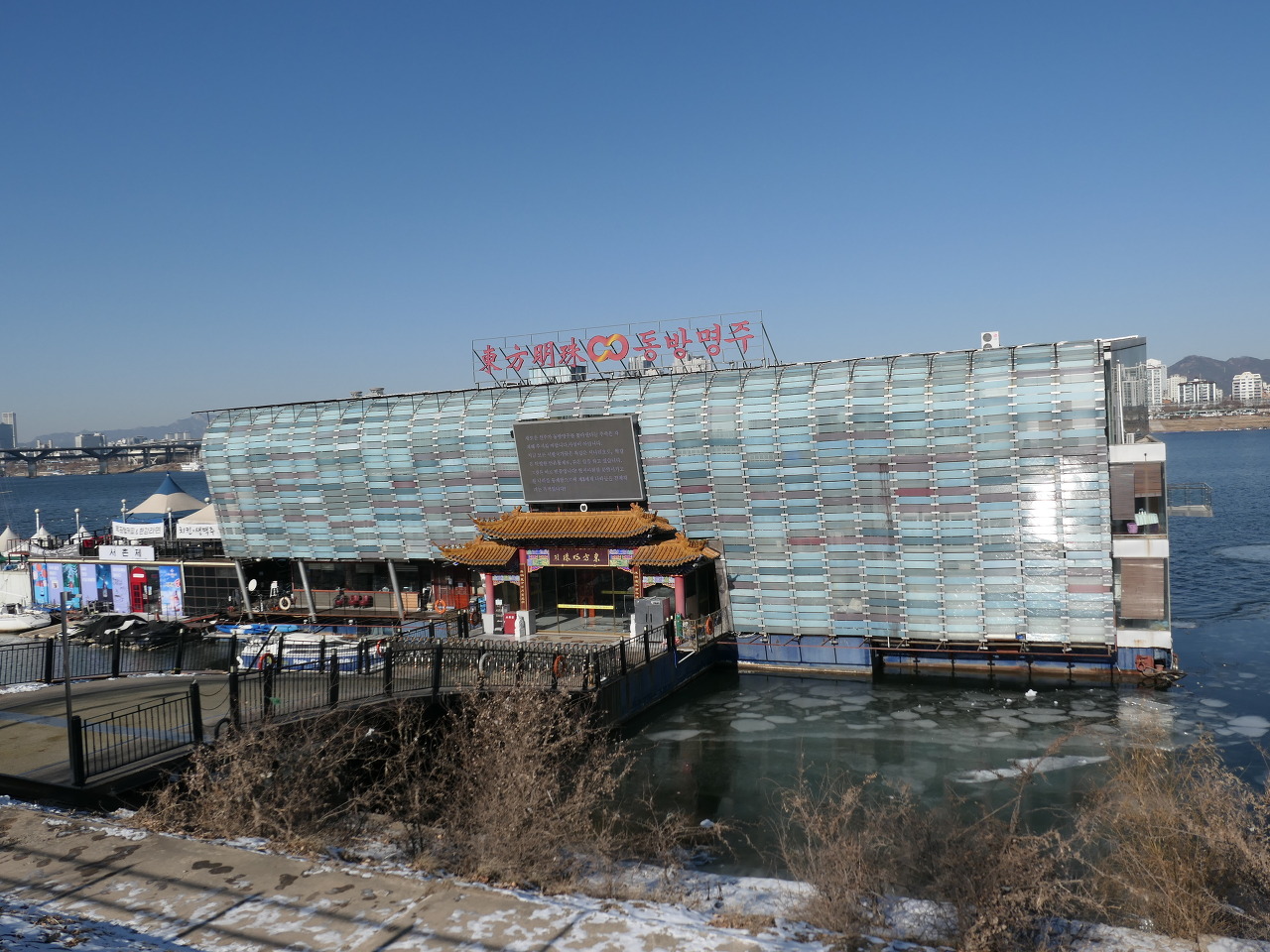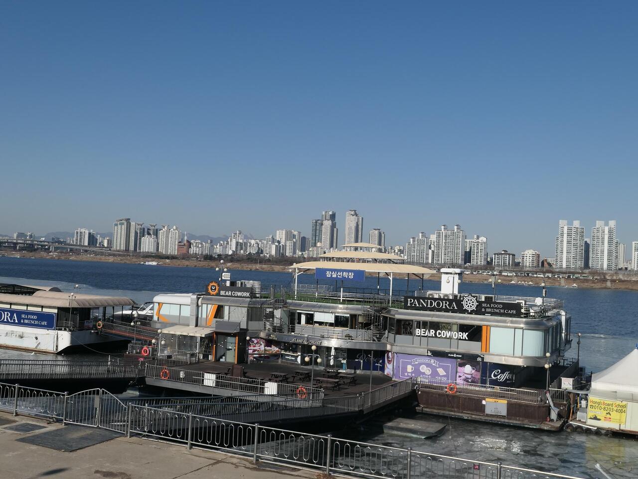 한강길로 나와서 올림픽 경기장이 보이는 강변길로 가면 잠실 선착장을 지나고 곧이어 강위에 떠있는 동방명주라는