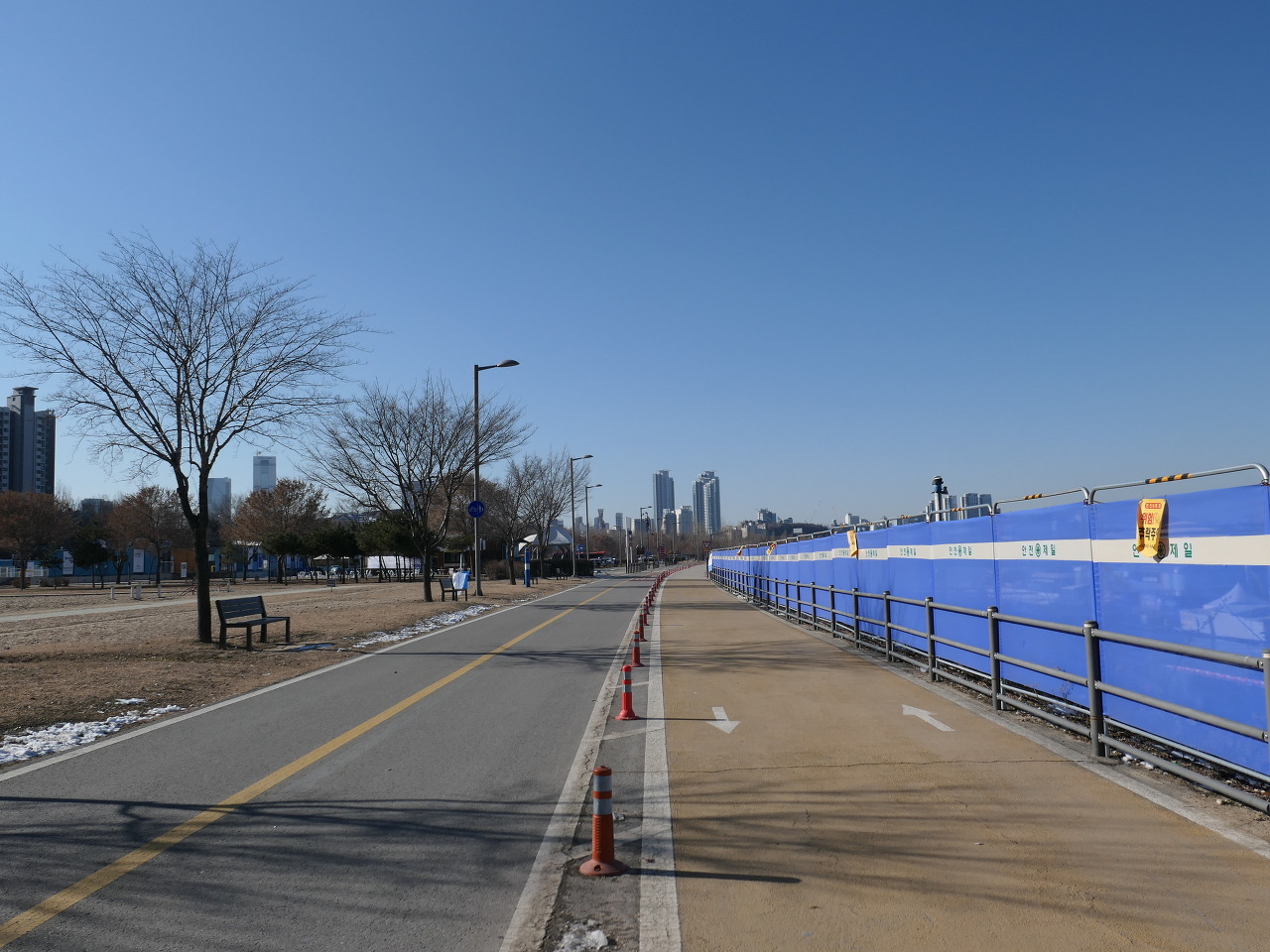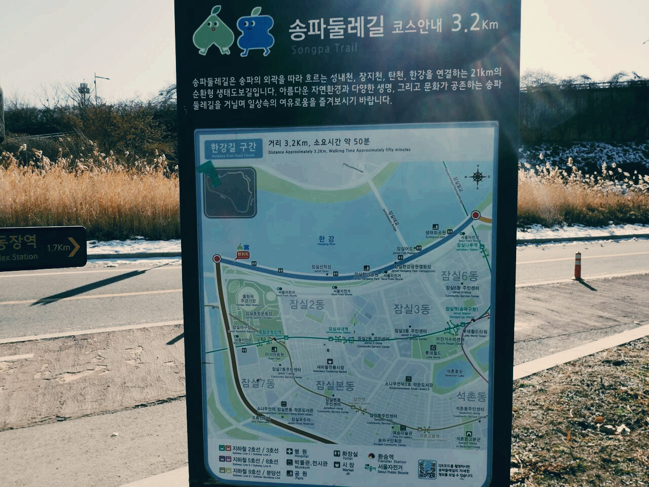 동방명주를 지나 탄천길로 들어가 종합운동장역 6번 출구에서 5.6k 도보를 끝낸다.
