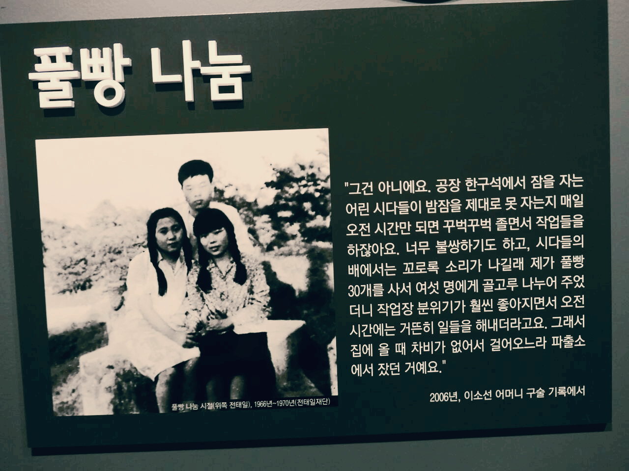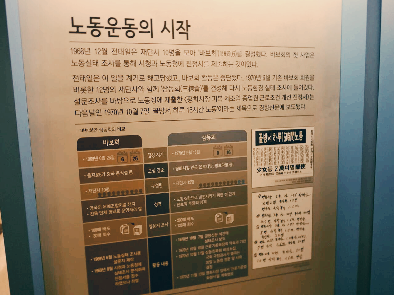 학교라도 다녔지만 전태일은 평화시장에서 일을 하며 힘든 삶을 보낸걸 나중에 알게되어 그의 삶을 알고싶어
