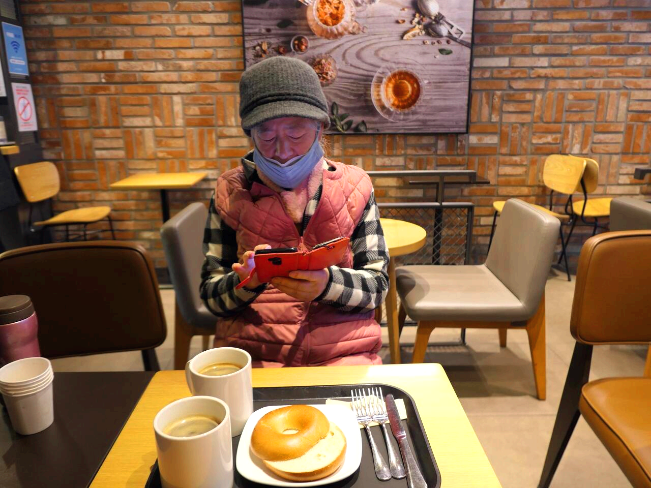 산책하다 전시회도 구경하고 카페로 들어가 큰 며느리고 보내온 무료 쿠폰을 이용해 커피와 빵을 먹으니 기분이