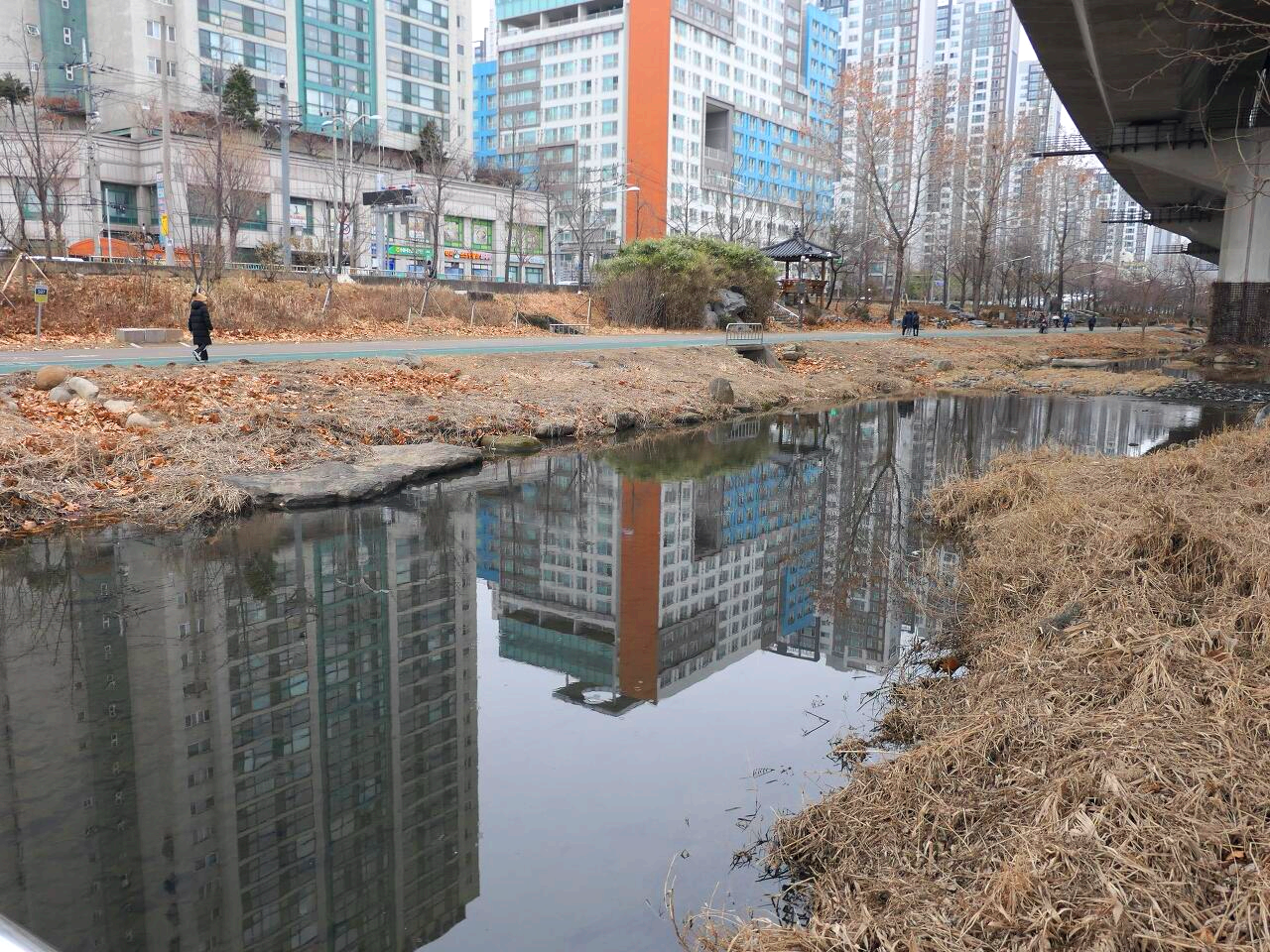 홍제천이 있어 천변길로 가다가 인공폭포 지나 홍제역에 도착해 9.1k의 즐거운 도보를 끝내고
