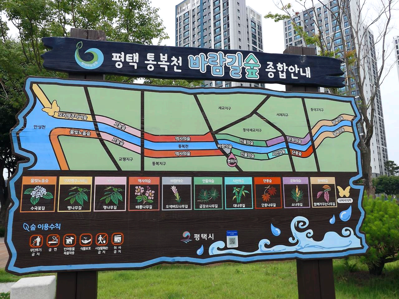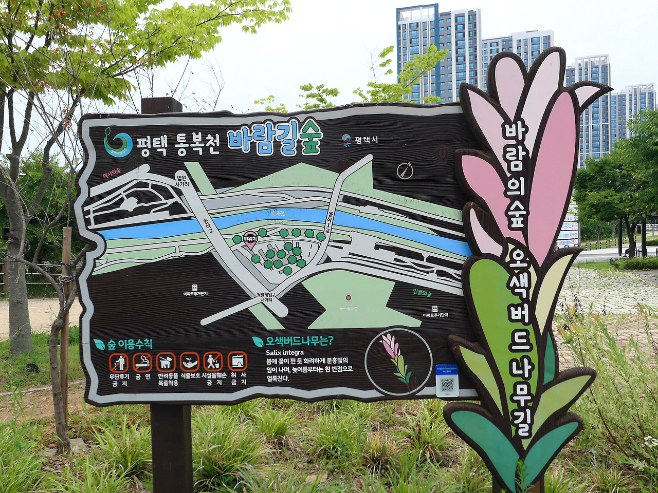 지나서 통복천으로 진입해 천변길로 가다가 제방으로 올라가 숲길로 가면 통복천 바람길숲
