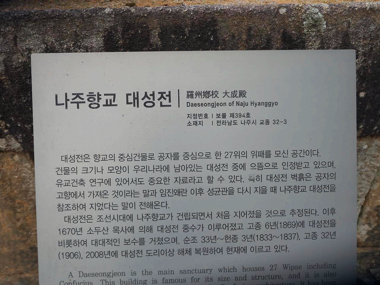 다음은 택시로 이동해 나주향교에 도착해 보물인 대성전도 문을 열고 들어가 둘러보고 풍류락도