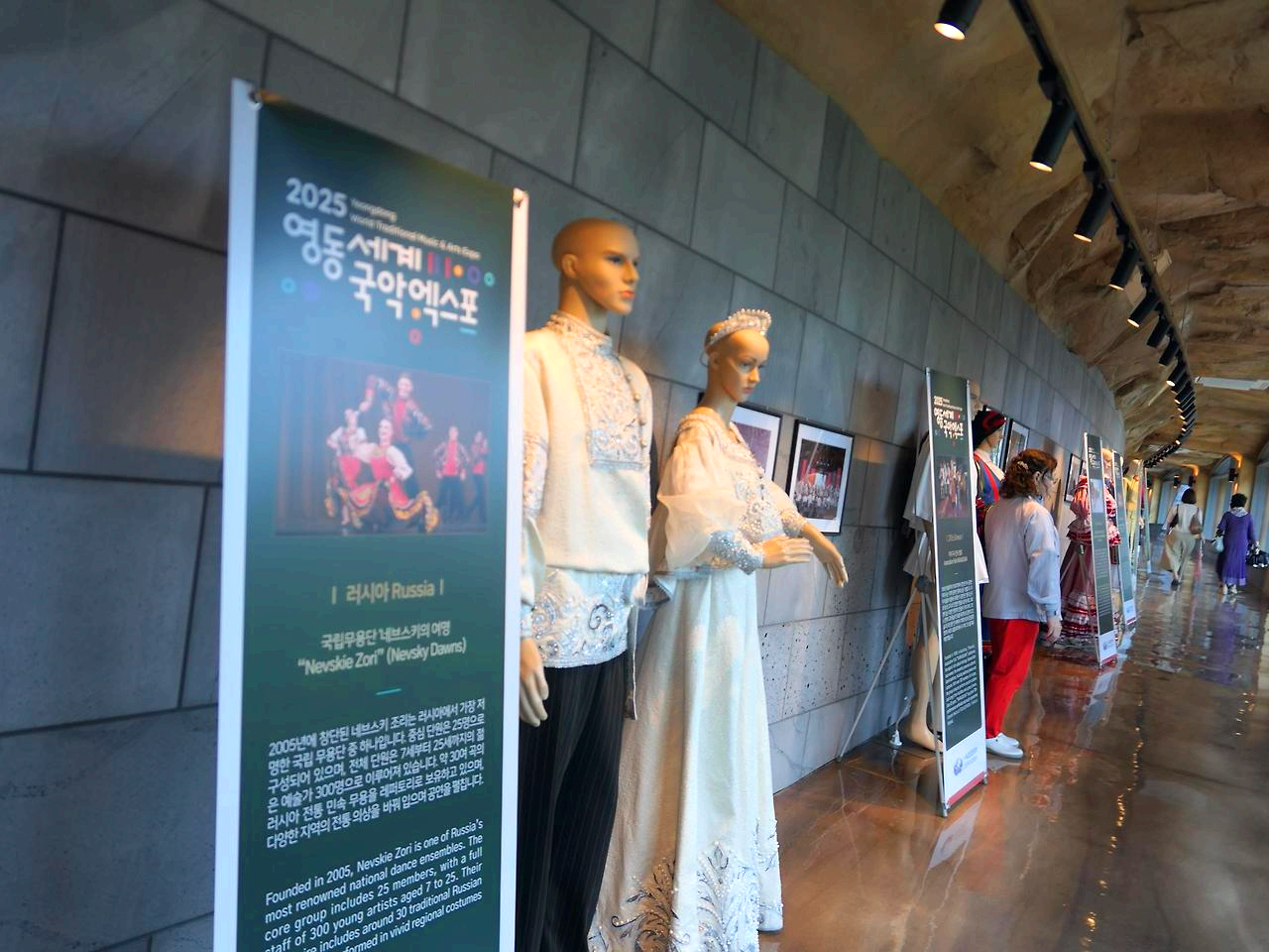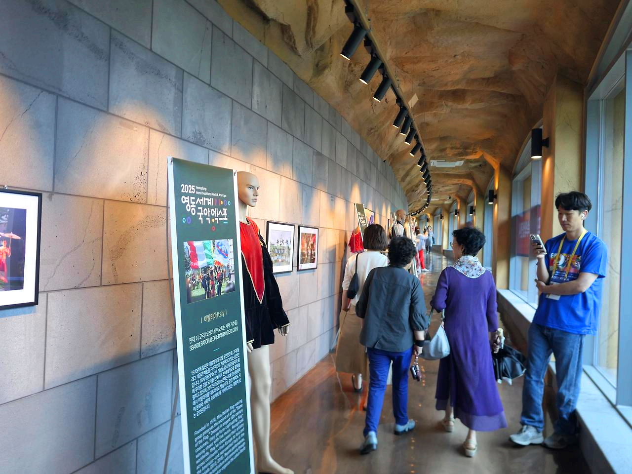 주 무대의 공연을 보고 부근의 전시실에서 각국의 공연 복장 사진과 영동 관광 사진도 관람하고