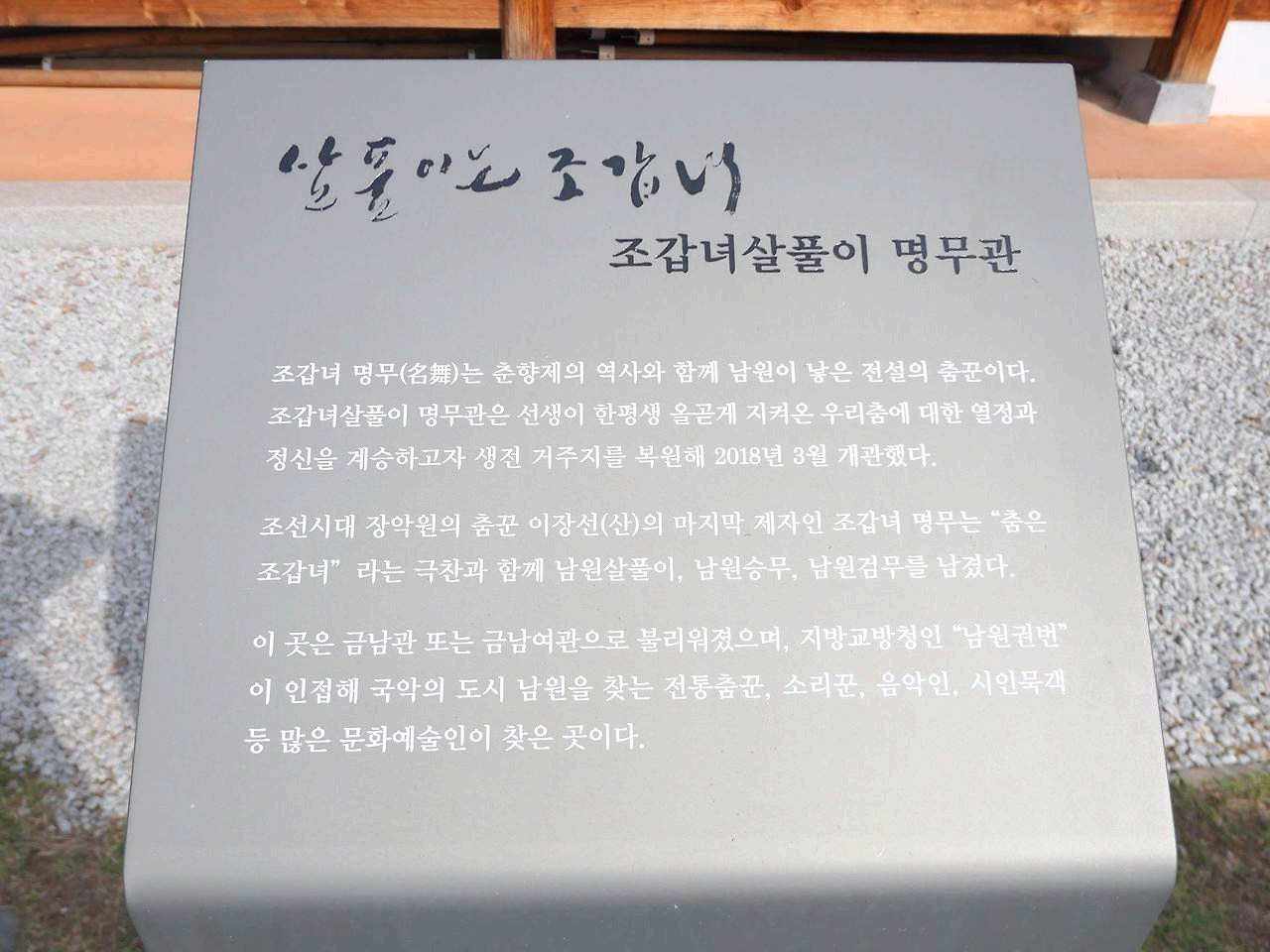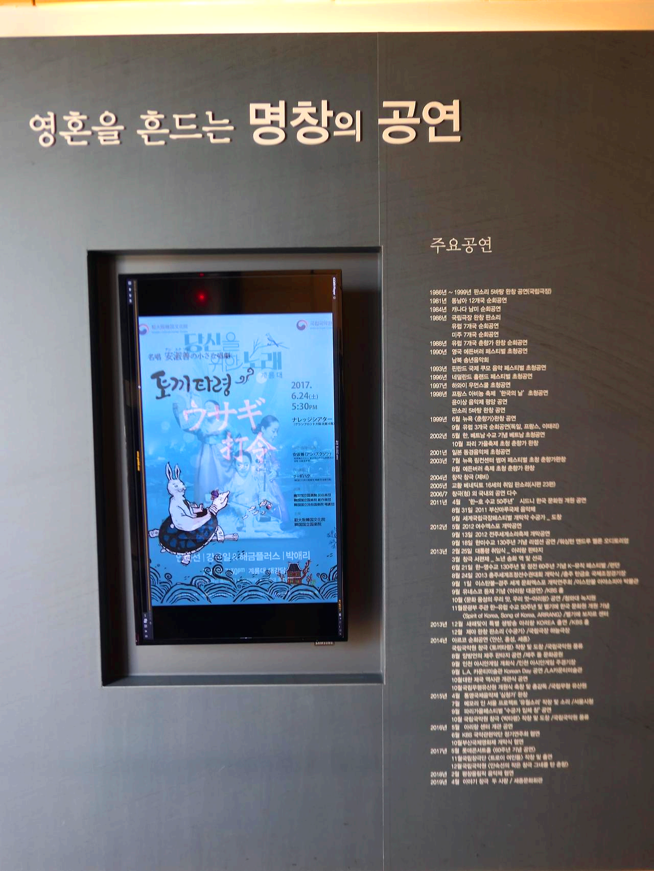 하는데 조갑녀 살풀이 명무관과 특히 안숙선 명창의 여정 전시관은 판소리 창 소리가 계속 흐르는