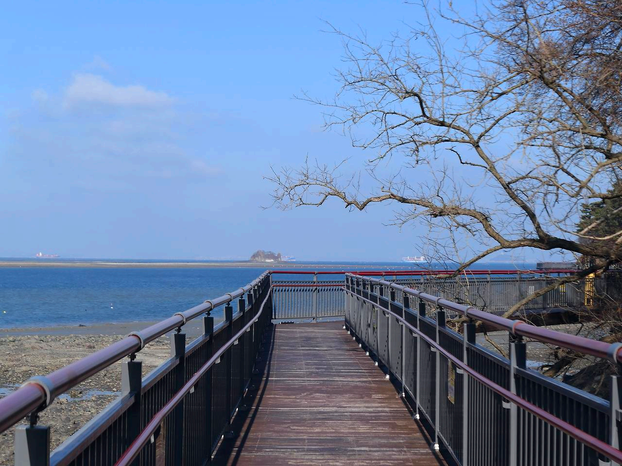 가면 되는데 한바퀴 도는 원점회귀다. 먼저 영흥대교 아래로 넛출선착장을 지나면 나무데크길이