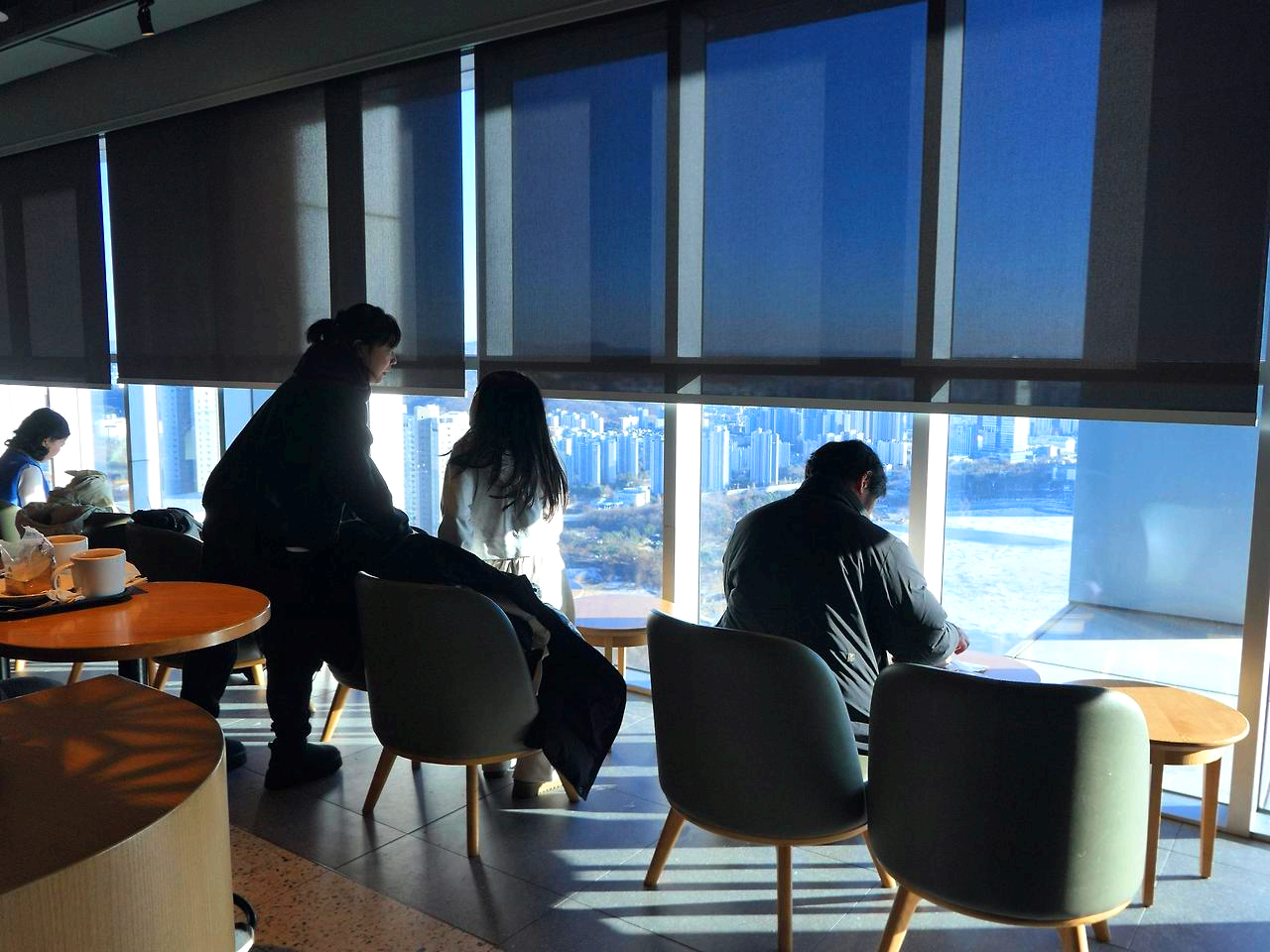 나와서 부근의 원천호수를 가볍게 돌고 sk뷰레이크 건물 41층에 있는 스타벅스로 갔는데 생각보다