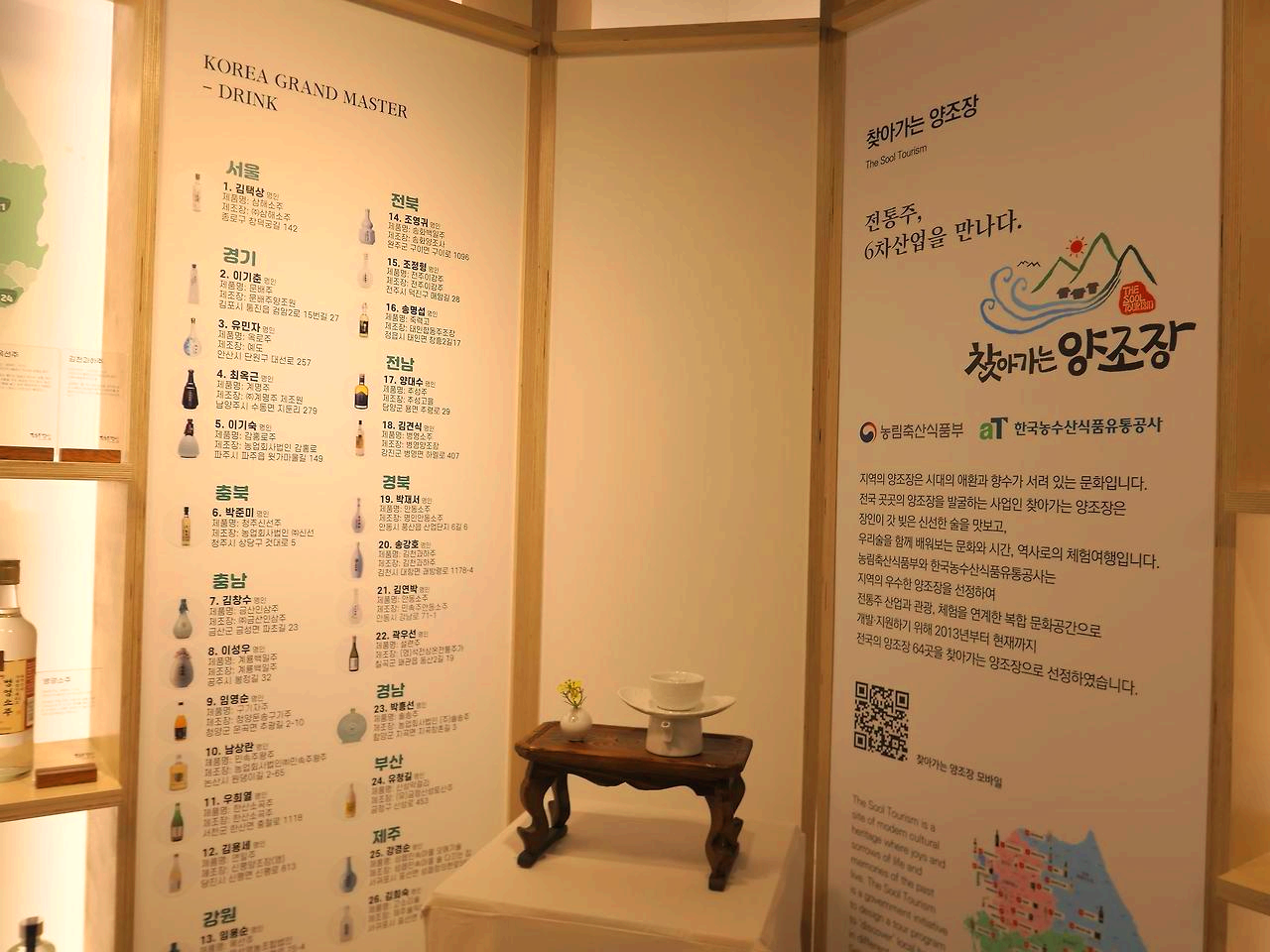 갤러리가 있다. 입장료는 무료이고 한식과 전통주에 관한 전시를 하는데 전통주가 지방마다 상당히
