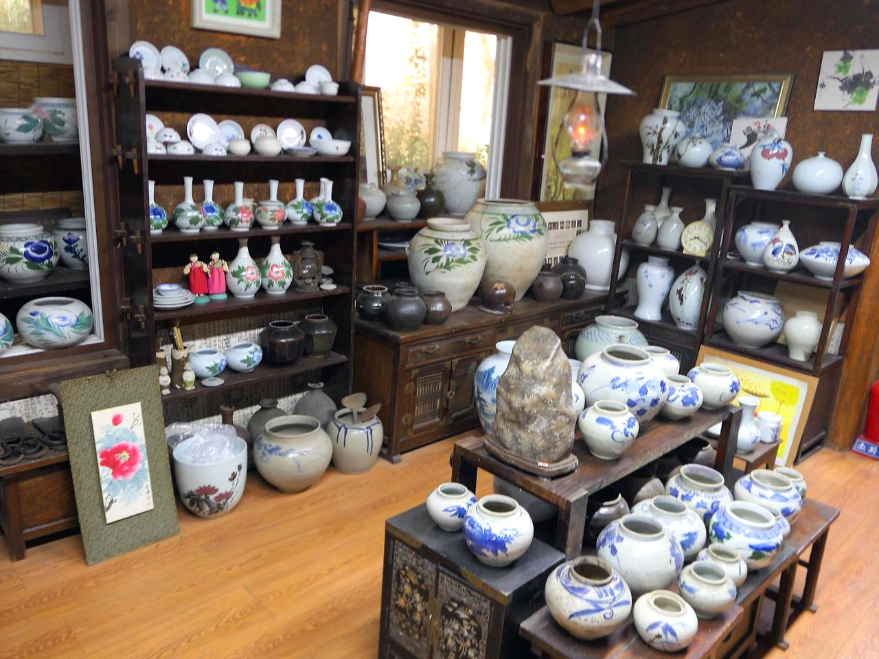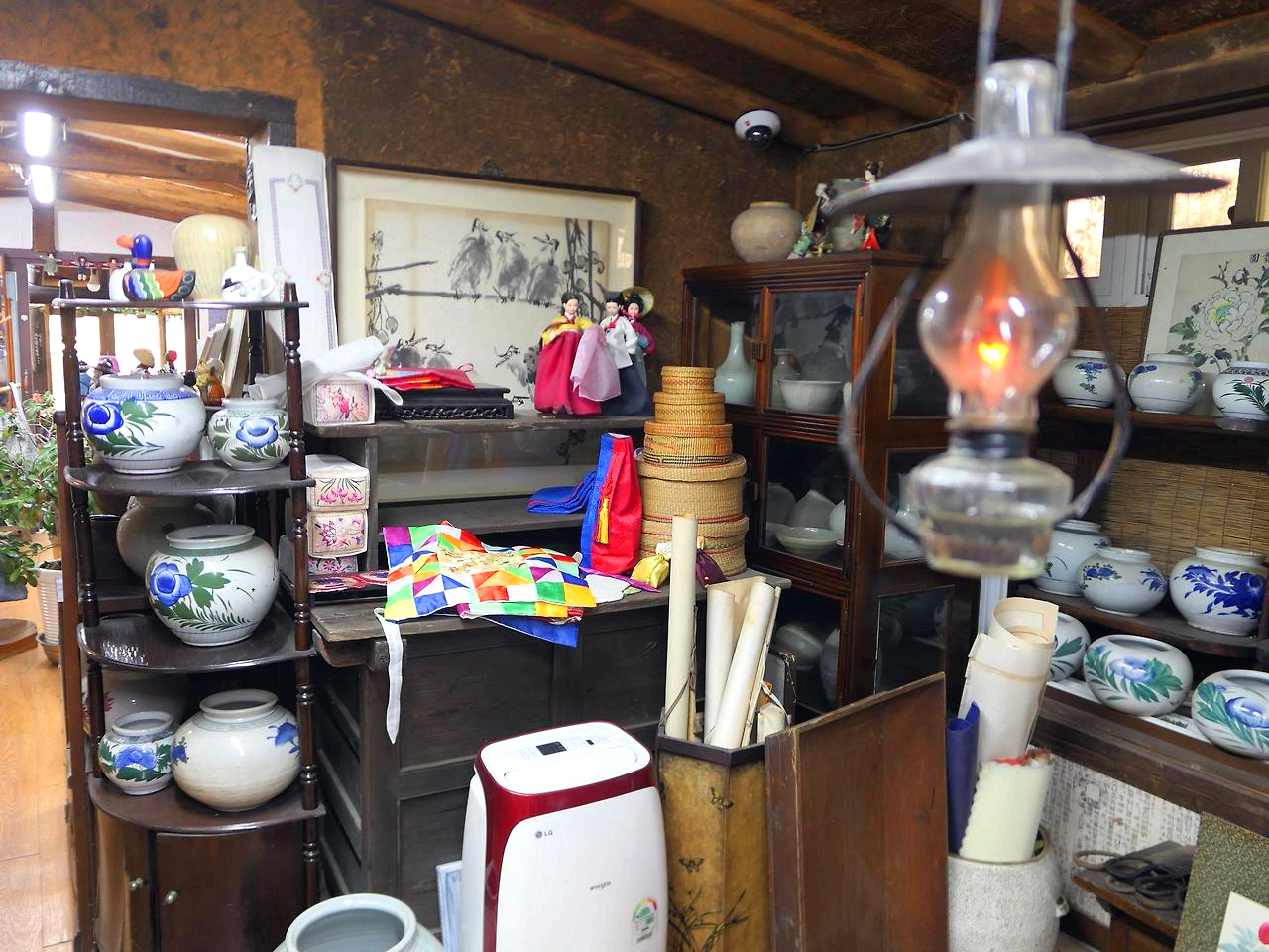 많은 물건들을 보는데 아무도 없는 무인 갤러리에 판매도 하는거 같다. cctv가 설치되어 있고 밖에
