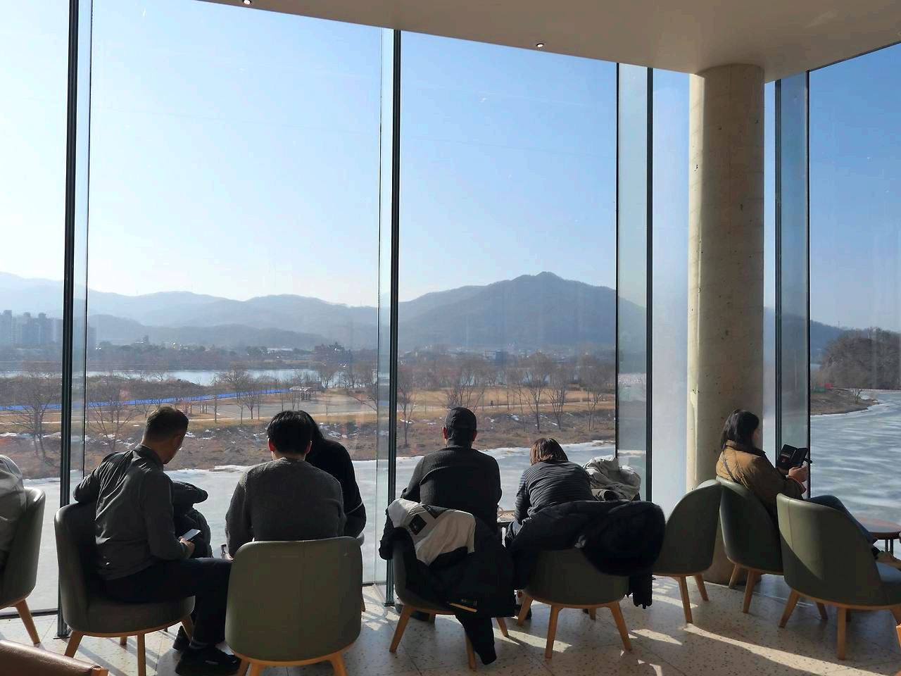 공공 시설이 있다는게 바람직해 보였다. 미술관을 나와 남한강 강변의 카페에서 쉬는데 통창으로