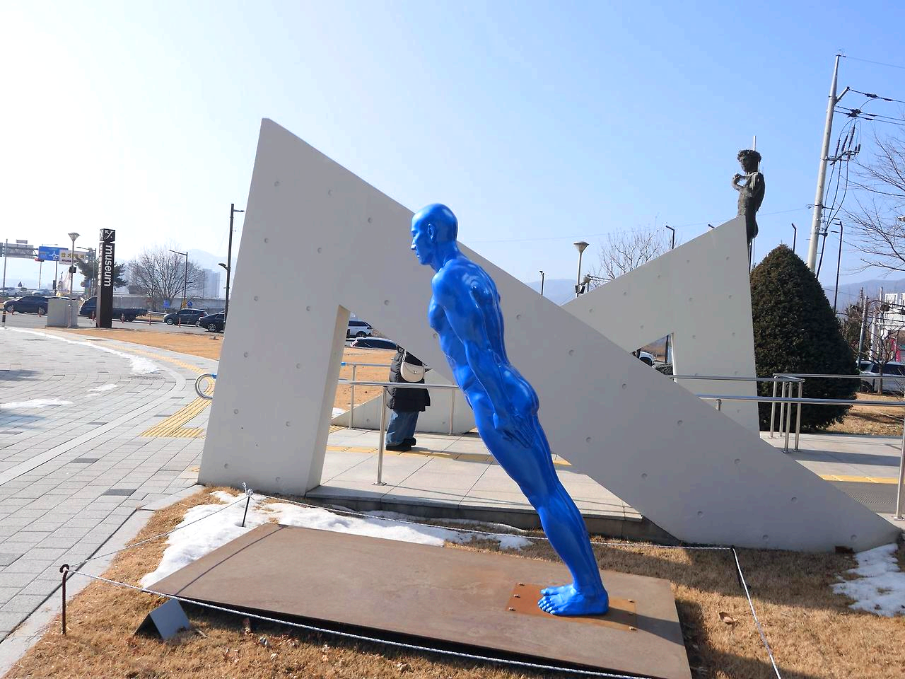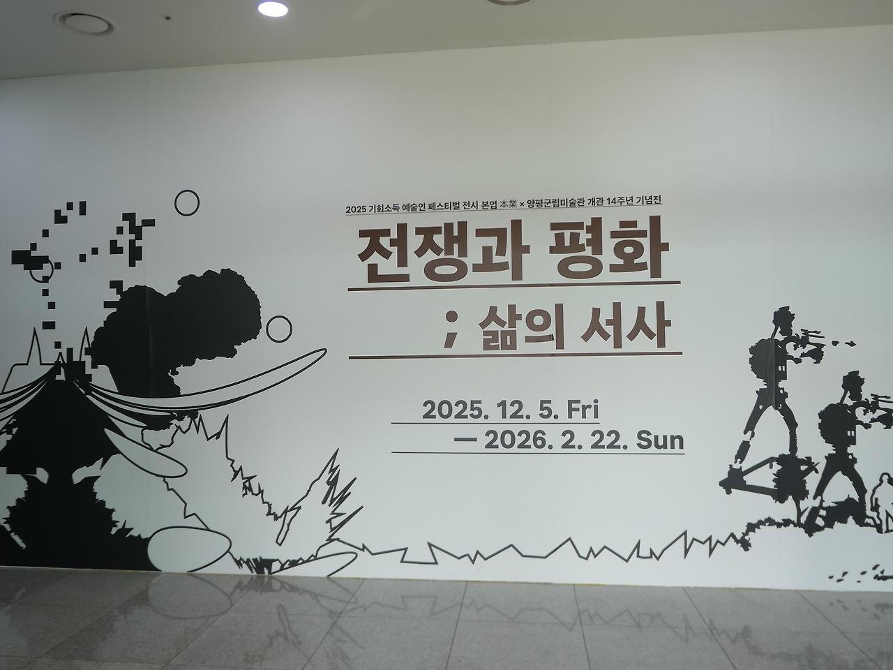 양평 도서관 옆에 군립 미술관이 있어 야외 조각상들을 먼저 보고 들어간다. 전쟁과 평화를 주제로