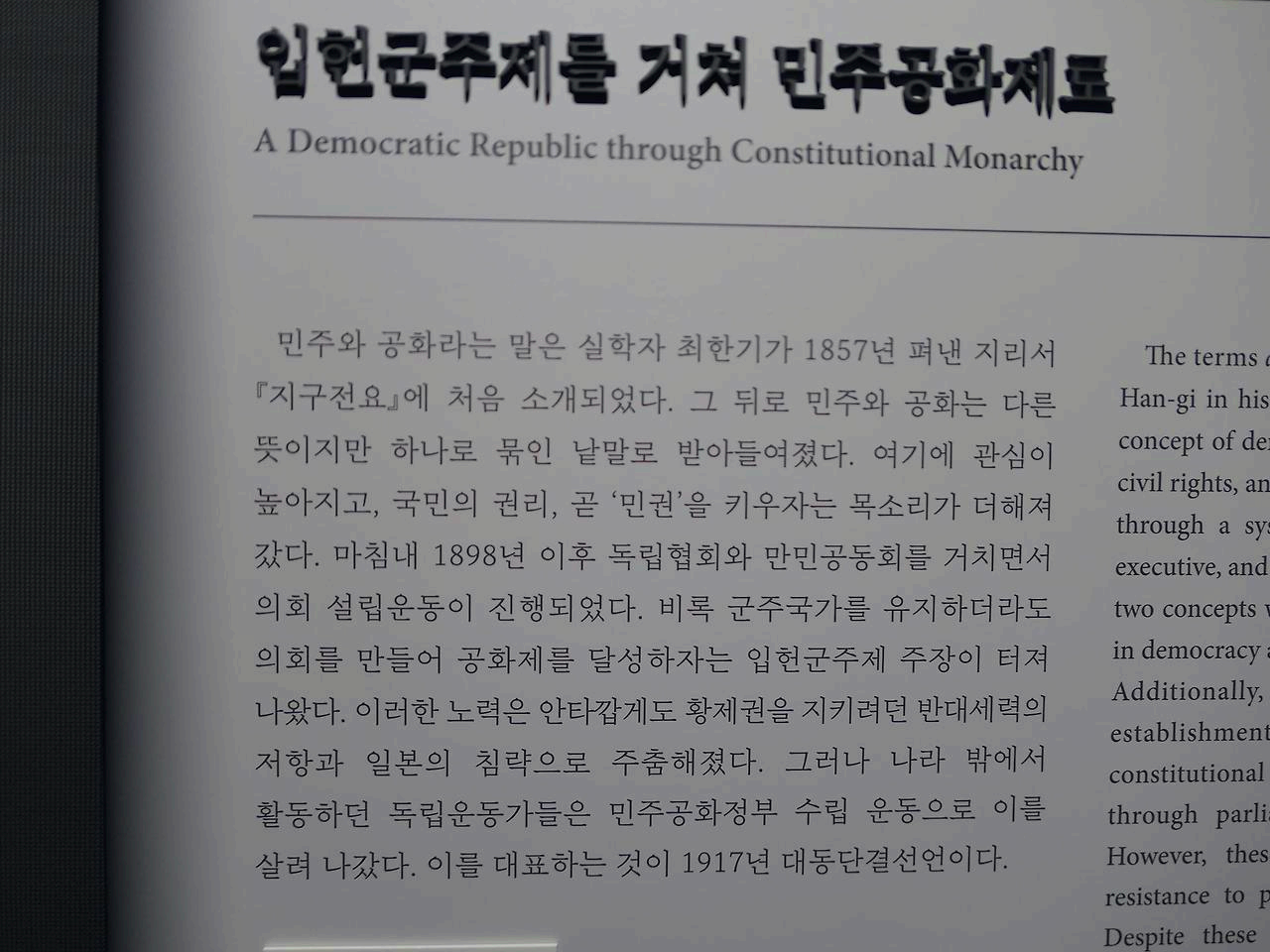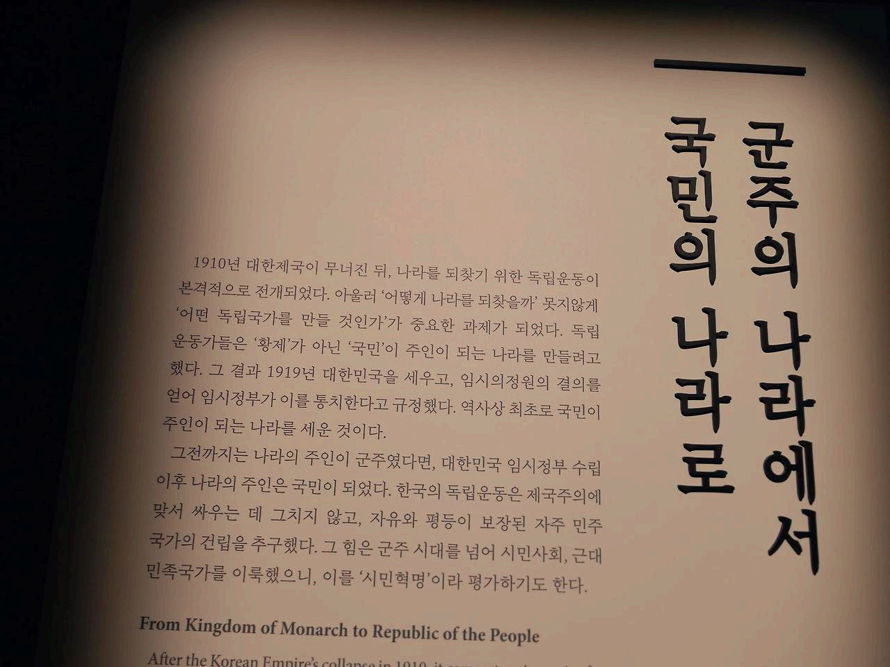 관람을 하는데 따듯한 실내가 너무 좋아서 각층을 천천히 살피는데 임시정부에서 대한민국으로