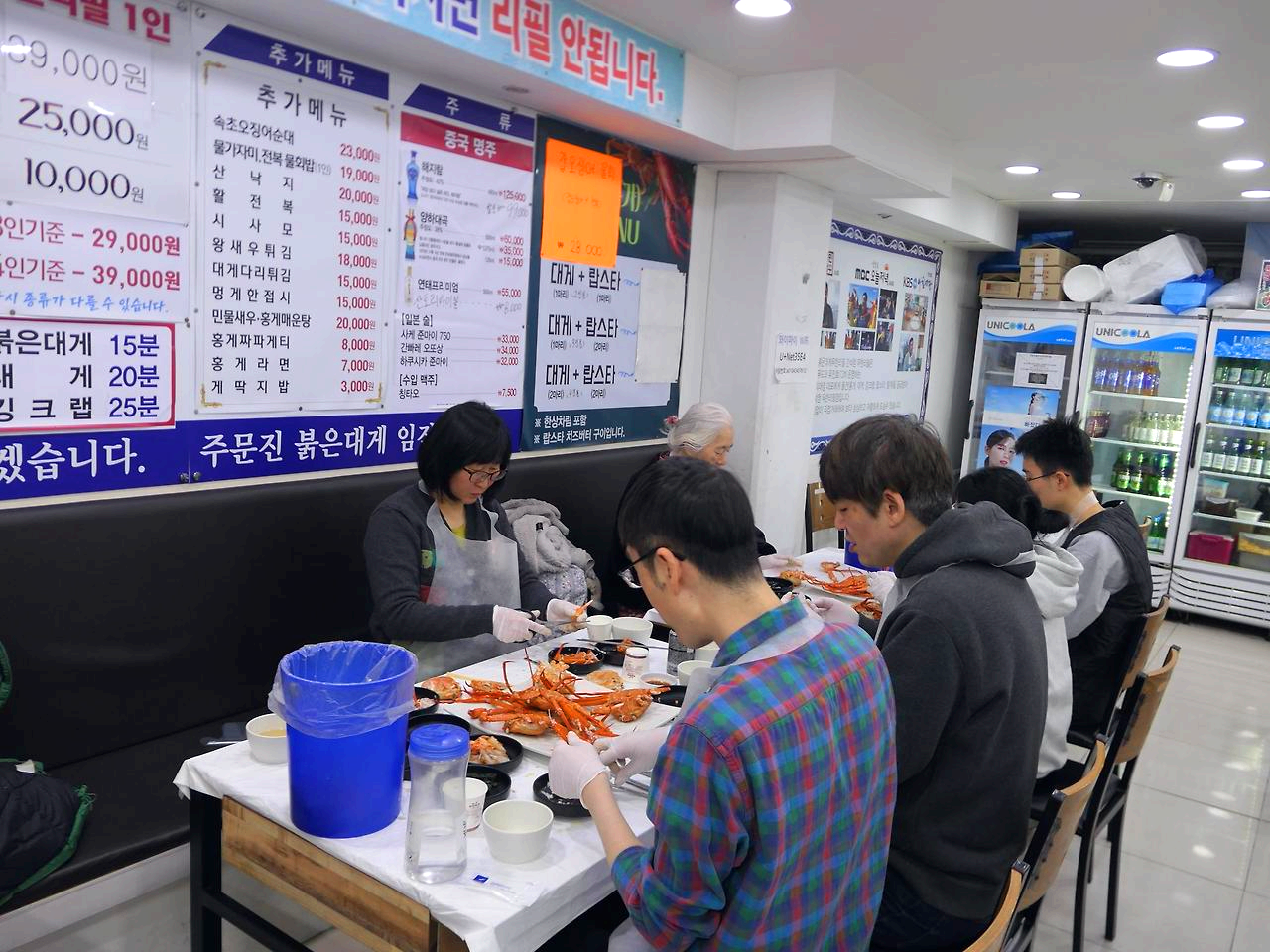 옆지기등 모두가 좋아 하는거 같아 간석역 부근의 홍게집으로! 무한리필 시간은 두시간으로 정해져