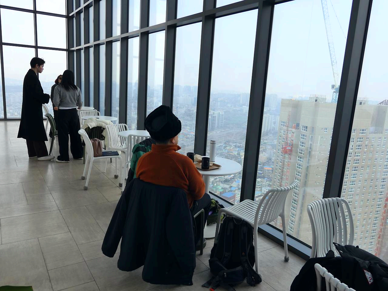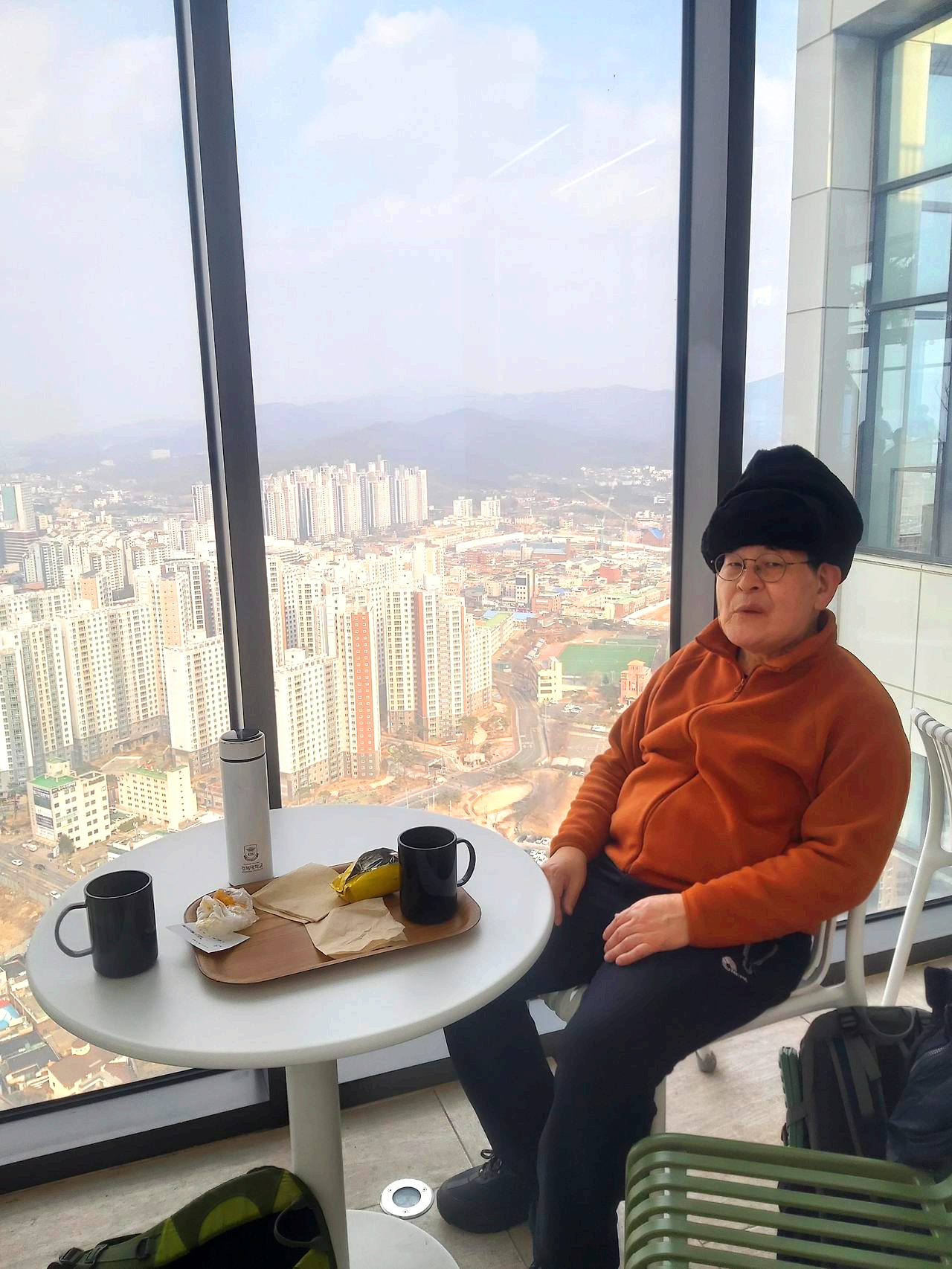 타운홀 47층 전망대 카페로 옮겨 천안의 전경을 보면서 차를 마시며 삶의 이야기를 나누며 느긋하게