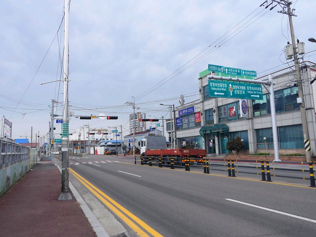 않고 갯벌이 보이고 공원도 있어 지루하지 않아서 좋다. 동백대교를 지나고 장항읍 물양장에 어선이