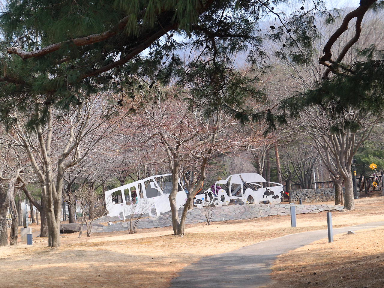 코스도 산길은 피하고 평지길로 가면서 장울진 미술관 조각공원도 지나고 청련사도 한바퀴 돌아서